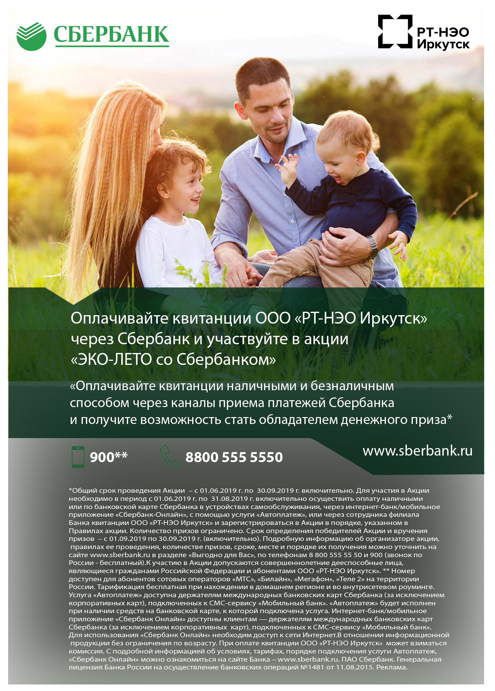 с 1 июня по 31 августа 2019 года РТ-НЭО Иркутск и ПАО Сбербанк проводят акцию!