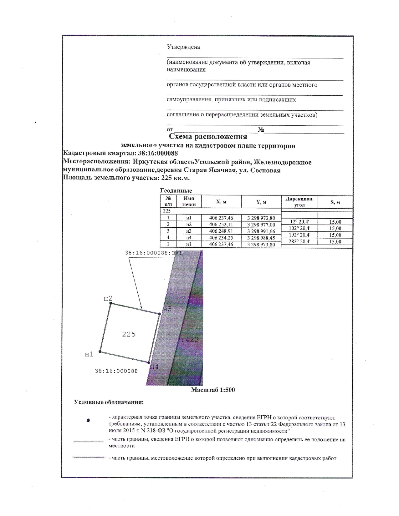 На основании ходатайства представителя по доверенности – Кожевниковой А.Г., действующей в интересах ООО «Т2 Мобайл» об установлении публичного сервитута, в соответствии с п.1 ст.39.37 Земельного кодекса Российской Федерации, Управление по распоряжению муниципальным имуществом администрации Усольского муниципального района Иркутской области извещает о возможном установлении публичного сервитута сроком на 49 лет, в целях размещения сооружения связи «Временное антенно-мачтовое сооружение (опора) для размещения оборудования связи высотой до 30 метров, расположенного по адресу: Российская Федерация, Иркутская область, Усольский район, Железнодорожное муниципальное образование, деревня Старая Ясачная, ул. Сосновая, площадью 225кв.м.(согласно приложенной схемы).