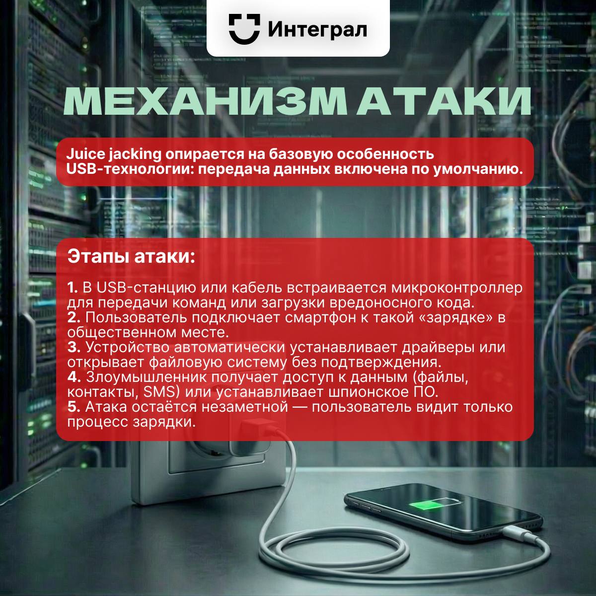 USB‑порт — это не просто источник питания, а полноценный интерфейс, через который устройство обменивается данными с внешним миром. И именно эта функция открывает возможности для атак.