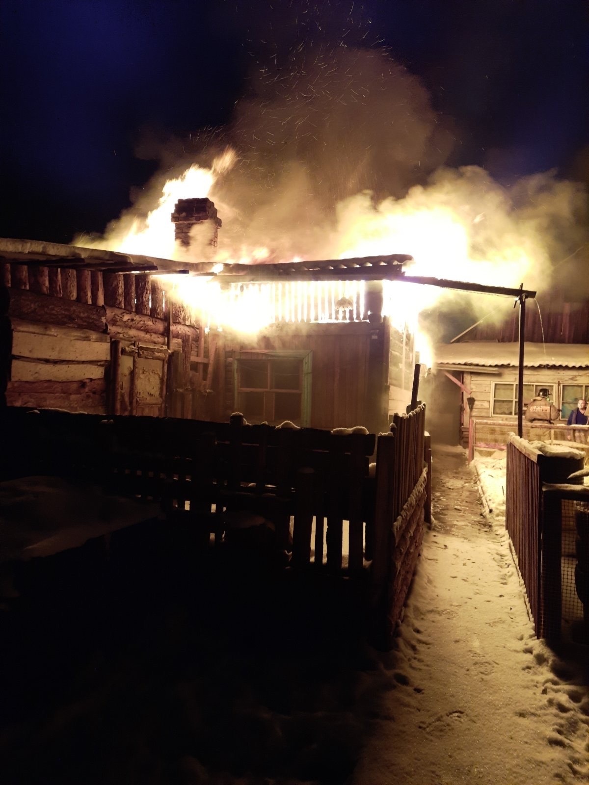 На момент прибытия первого подразделения дом и хозяйственная постройка были полностью охвачены огнем, по всей площади произошло обрушение кровли, потолочного перекрытия, существовала угроза соседним строениям. В ходе разбора конструкций сотрудником пожарной части в комнате на полу был обнаружен погибший мужчина 1973 г.р. Виновные лица и обстоятельства произошедшего предстоит установить дознавателям МЧС России.