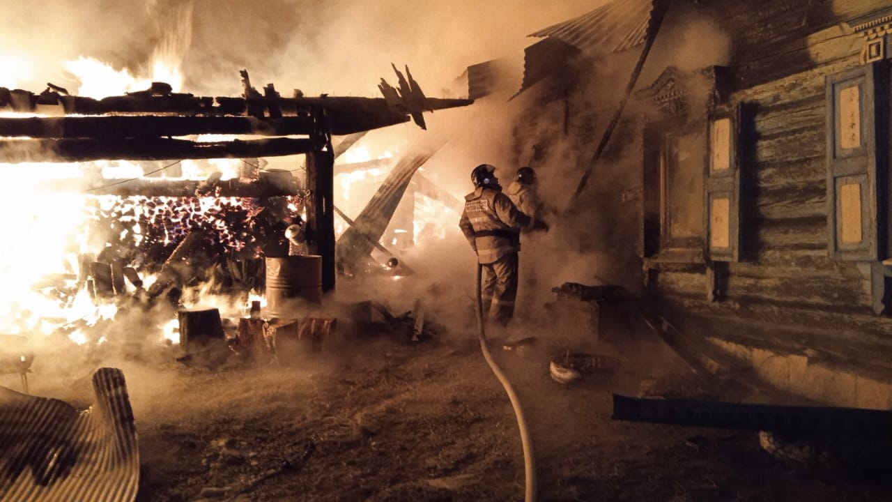 Около 19:00 часов пожарно-спасательные подразделения МЧС России боролись огнём по ул. Ленина в с. Новожилкино, там произошло возгорание надворных построек.